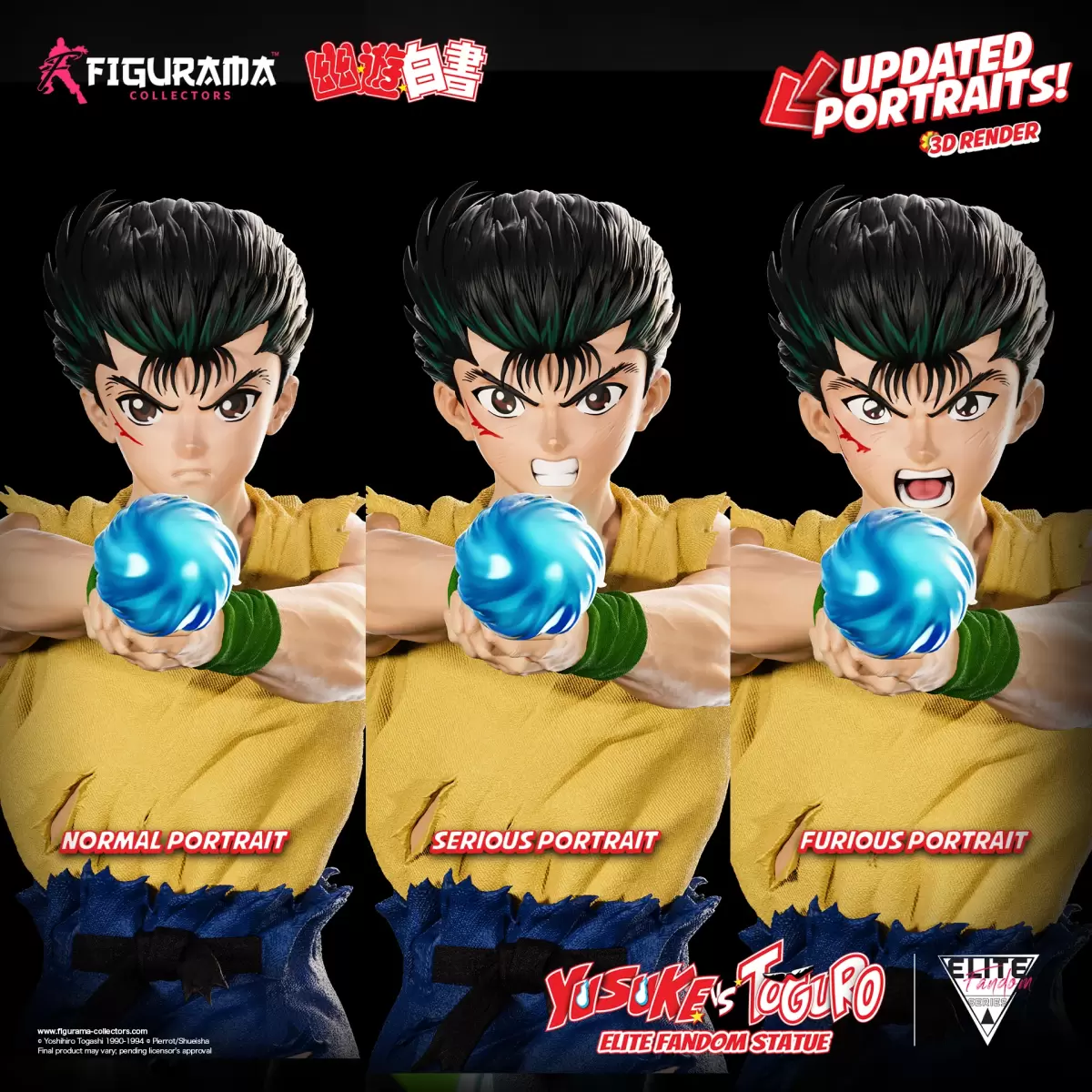 Figurama Collectors「幽助 vs 戶愚呂」1/6 比例場景雕像,還原兩人在暗黑武術會上的激鬥場面,採用特殊的設計,讓幽助可以呈現動畫中標誌性的靈丸發射動作,還可以翻轉呈現倒掛、背靠牆的絕望姿勢。幽助附有自信微笑、咬牙苦撐、憤怒吶喊三款替換表情;戶愚呂弟則是有戴墨鏡嚴肅表情與拿下墨鏡後露出邪惡笑容的兩款表情零件,能夠賞玩出多種組合。