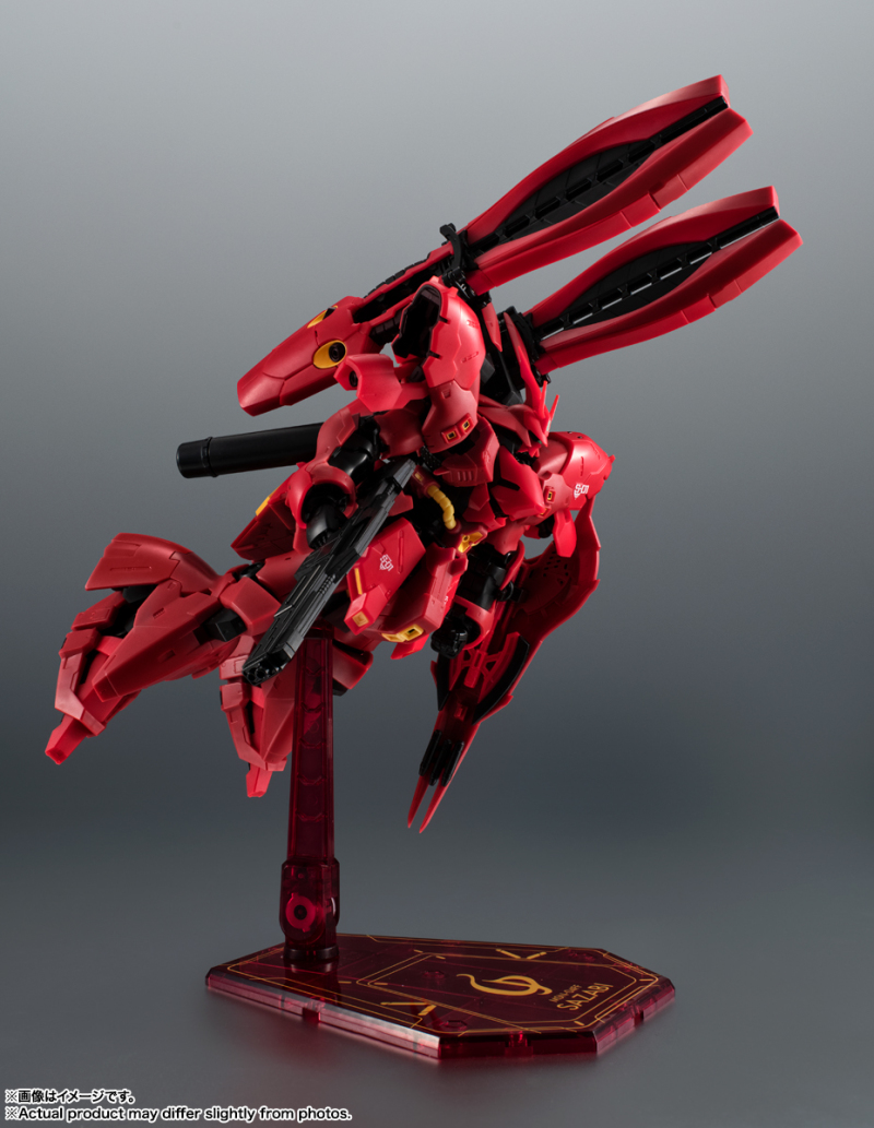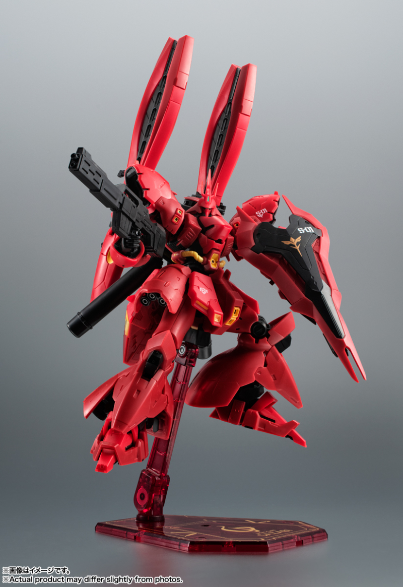 有別於 2012 年推出的原作版本,「ROBOT魂 MSN-04FF 沙薩比 雙管感應砲裝備」採用新規零件徹底再現特別影片中的形象,具備 RG 風格般不同深淺的紅色裝甲、裝甲表面更高密度的細節,全身各處推進噴嘴、腹部的能源管與 MEGA 粒子砲口都有完整的黃色分件。同時還搭載了近年更為進化的可動設計,能夠把玩出多種靈活的戰鬥姿態。