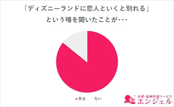 根據調查顯示,約 85 %的日本民眾都曾聽說過這個「去迪士尼樂園約會的情侶會分手」的都市傳說,代表其實在日本民間這是普遍被大家所流傳的。