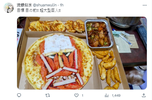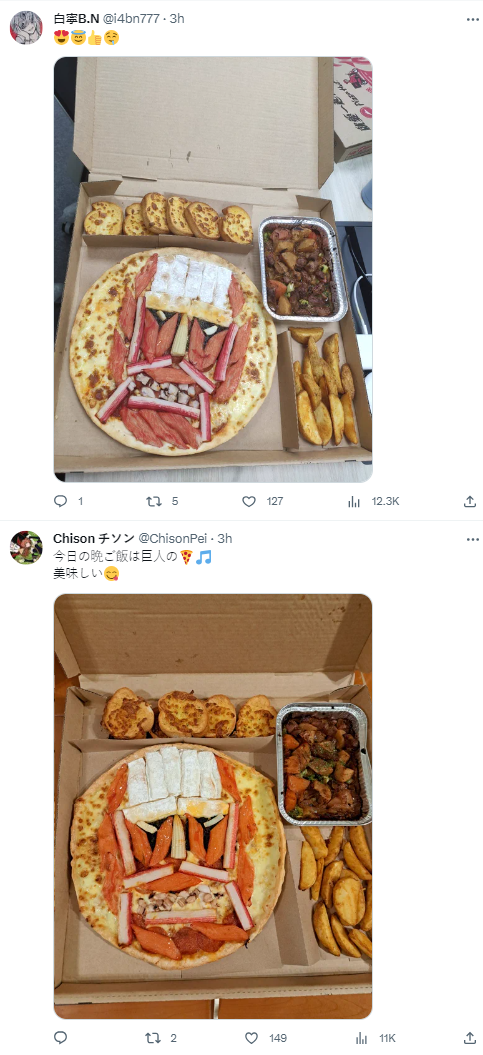 不少台灣粉絲也在推特下方留言把自己享用「必勝巨人披薩」的照片分享出來,奇特的造型也讓不少國外網友感到新奇,看來這方面算是台灣方有創意 XD。
