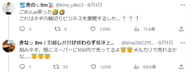 推主:「蔥花在超市已經有賣一盒100元了喔不知道在Mercari(網路二手交易平台)賣不賣得掉。」