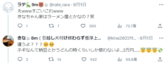 推主:「才不是???蔥只在有納豆和烏龍麵的時候放而已……三萬元(飛了)」