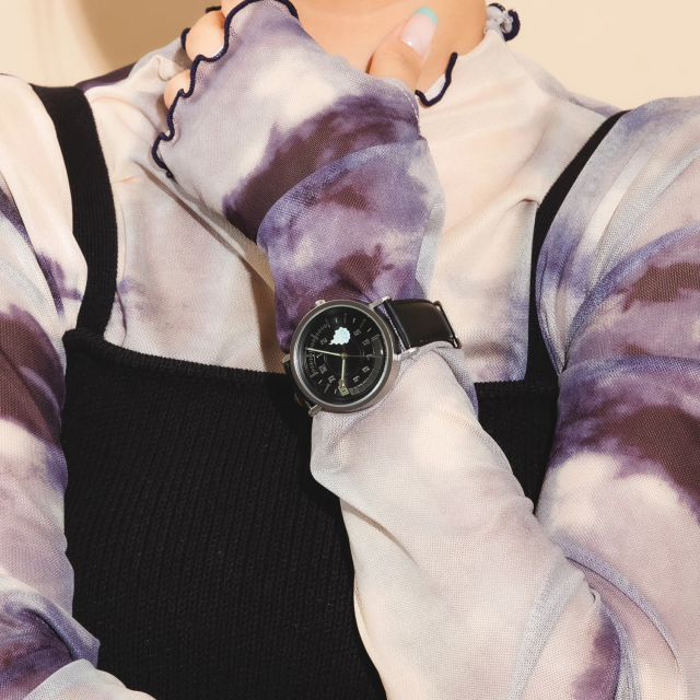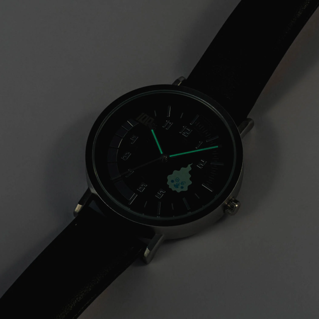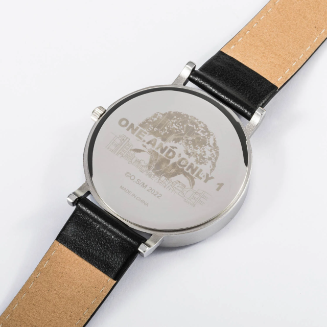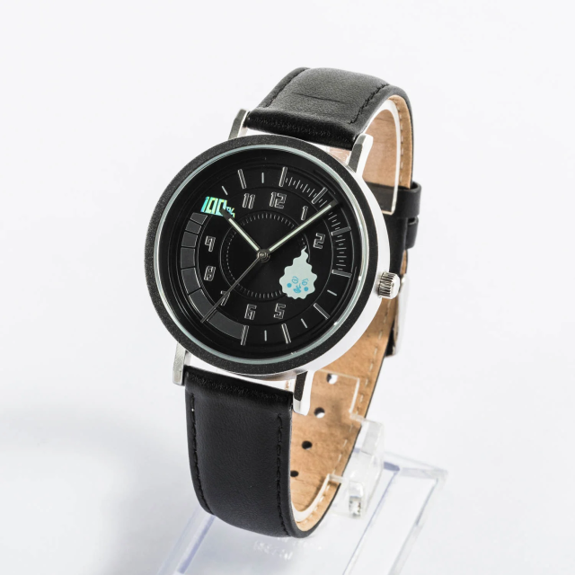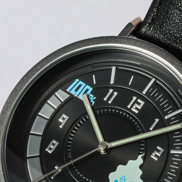 錶面藏有影山的上級惡靈「小酒窩」 ,並在 10 點鐘位置配置作品的 100 % 的字樣,錶背附有文字「ONE AND ONLY 1」,整體以影山服裝的黑色為基礎,算是簡潔有力的設計。