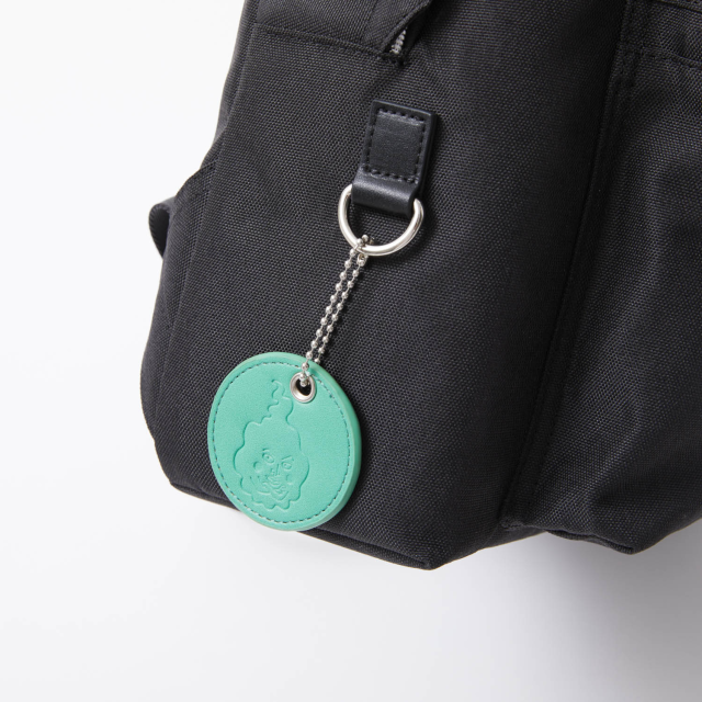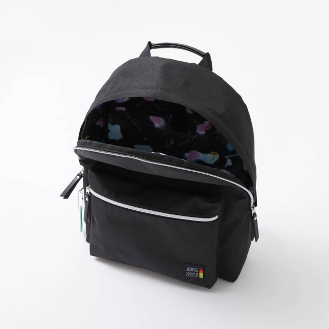 同樣以黑色為基礎,背包本體前方有個獨立收納空間,側邊附有上級惡靈「小酒窩」 的皮製吊飾,打開內裡也有滿版的圖案讓整體不顯得單調。