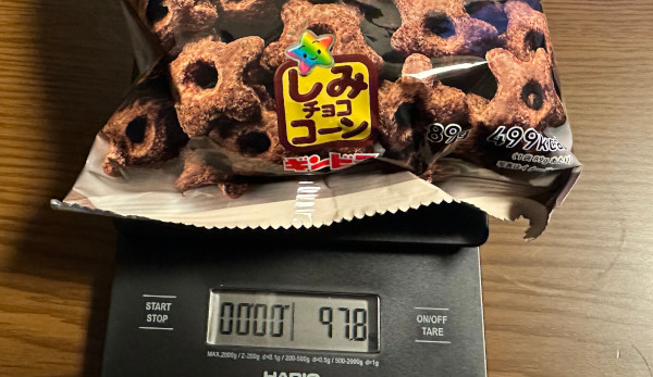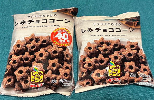 再來也是人氣品項「巧克力玉米果」,包裝上看起來就有變大了一點,實測通常版 63 g、增量版 89 g,約 1.41 倍的成長,也符合廣告的宣傳。
