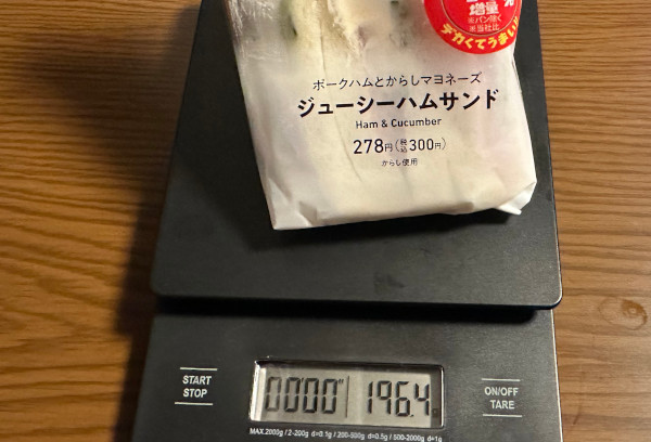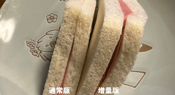 餅乾看多了來改換鮮食實測,這次是許多人常吃的「火腿三明治」,光看這個厚度就比之前多不少,測量後發現比起原版居然大大增幅了 73% ( 通常版 113.4 g ,增量版 196.4 g ),比廣宣還誇張,沒有漲價的情況下真的很佛心 !
