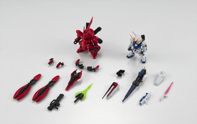 「FW GUNDAM CONVERGE CORE RX-93ff ν鋼彈 & MSN-04FF 沙薩比套組」兩機本體基於過去發售的版本重新施以新版塗裝,再現 FF 版本特徵的機身色彩與標誌。武裝配件部分包含各自運用的光束步槍、光束軍刀、光束散彈步槍、光束戰斧、盾牌等,不具備原版感應砲武裝,取而代之的是 FF 版全新設計的「遠程翼狀感應砲」與「雙管感應炮」,藉由替換零件方式就能再現遠程翼狀感應砲的砲管展開狀態。