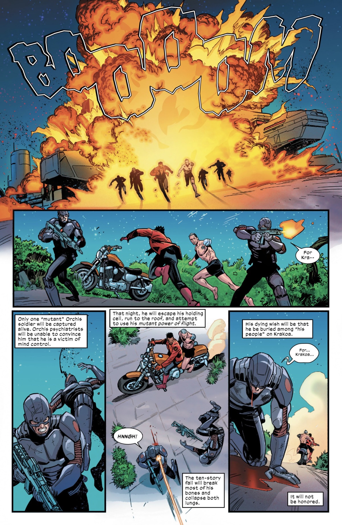 在地獄火慶典的悲劇之後,變種國已經完蛋,「X之殞落」正式展開。相對的,所有依靠變種人科技所打造的事物都開始崩解——包括工匠(Forge)所設立,用來將「穹盧之子(Children of the Vault)」給封印住的屏障。