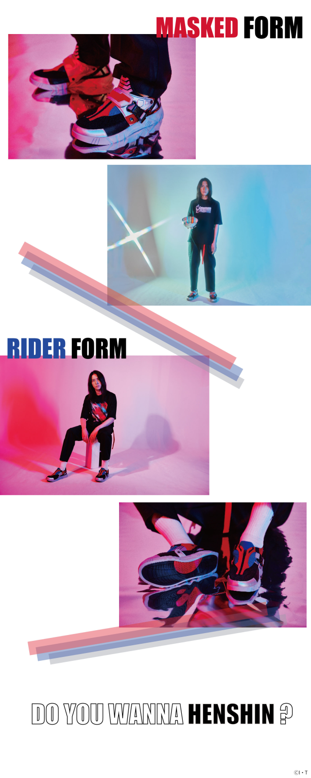 以《假面騎士系列》為主題的街頭服飾支線-「HENSHIN by KAMEN RIDER」,品牌名字取自假面超人系列經典動作-「變身!」。以變身的羅馬拼音『HENSHIN』代表「身體的外部變化」 ,象徵穿起潮流服飾時不僅能改變外觀, 更能逐漸改變內在,超越自我。