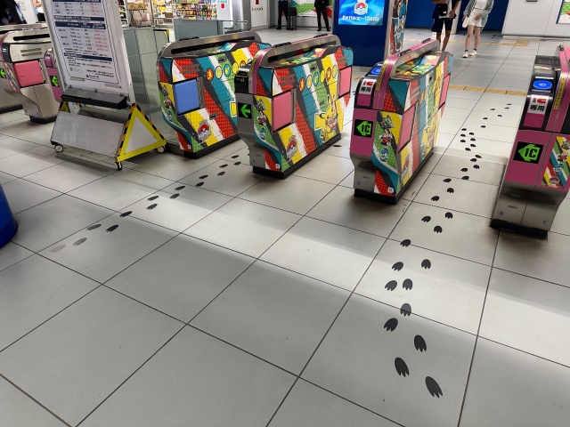 還不只是這樣,若遊客們在橫濱車站的檢票口處刷卡進站的話,還會聽到皮卡丘超可愛的叫聲,彷彿就是在告訴遊客們「歡迎來到橫濱」似的!而這還不是小編自己亂翻譯皮卡丘的意思,畢竟...你們看!地板上還出現著一對對小巧可愛的腳印,這不就是證明了皮卡丘正帶領各位參訪日本橫濱的意思嗎?