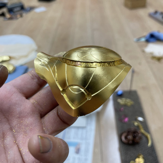 完成品也讓人驚艷不已,金閃閃的模樣展現出跟原本素體截然不同的貴氣風範,也透過加工讓整體色調更為協調,真的不是一般人能做到的。