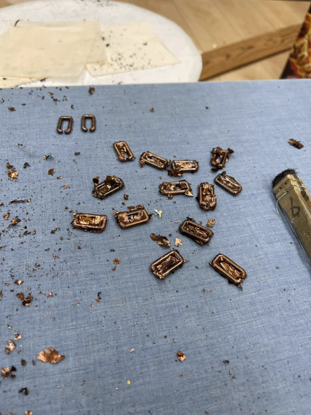不假他人之手,甫剛購入就立刻把各部零件拆下後進行貼箔工作,透過精細的作業手藝,讓這些原本呆板射出的模型組件,點綴成一塊塊亮眼絢麗的金箔藝術品,讓你看不出來這只是一個組裝模型。