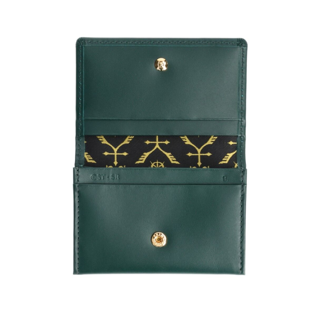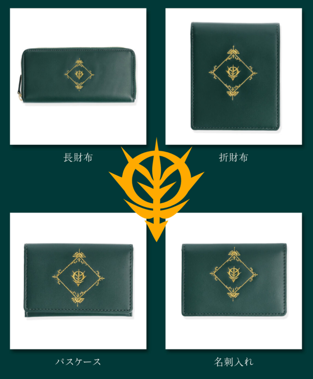 「薩比家皮革配件組合」選擇薩比家的代表-綠金色系搭配吉翁公國軍徽打造,並採用真皮皮革搭配刺繡來製作而成,各品項內裡還藏有金色滿版的圖騰裝飾。包含 : 長夾、兩折皮夾、名片夾與證件夾四款商品,可以讓你一次搭配使用,展顯出薩比家吉翁的榮耀之心。