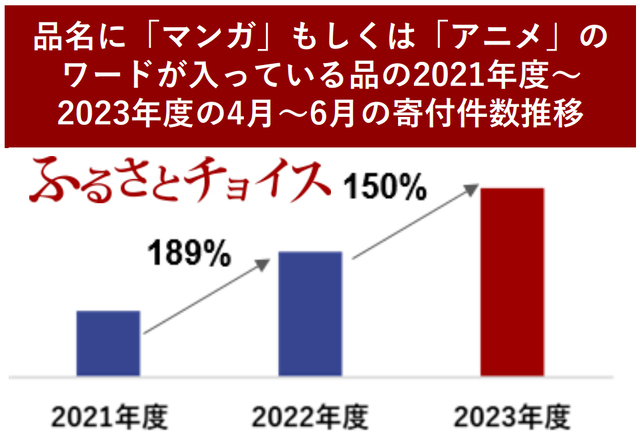 根據日本國內納稅情報網站「ふるさとチョイス」指出,這些與動漫 IP 合作的地方政府,近年有逐漸成長的趨勢外,越來越多人因為這個緣故願意向故鄉繳納稅金並扶持其成長,年增的比率的可說是非常可觀,也滿足了這些地方的財政需求。