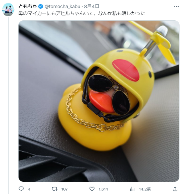 ▼有網友看到後分享自家母親的車上也有鴨鴨,超瞎趴。這款墨鏡鴨鴨似乎也很流行。