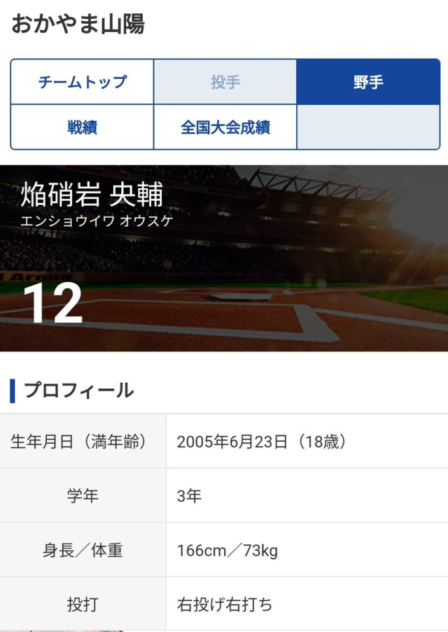 近期日本甲子園大賽開打,各地的高中棒球隊齊聚一堂在這個年度盛事上,卻有一位來自岡山山陽高等學校的選手意外出名,他名叫「焔硝岩央輔」,是一位高三的內野手,罕見的姓氏在日本引發話題。