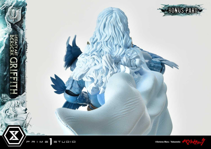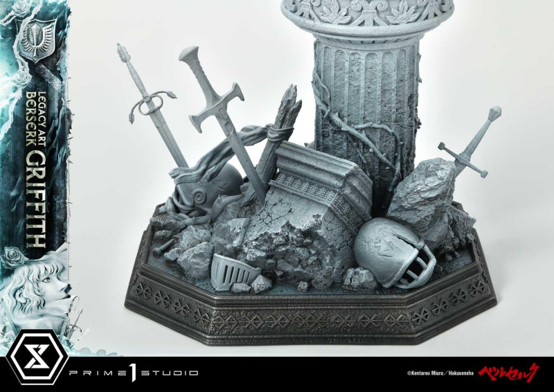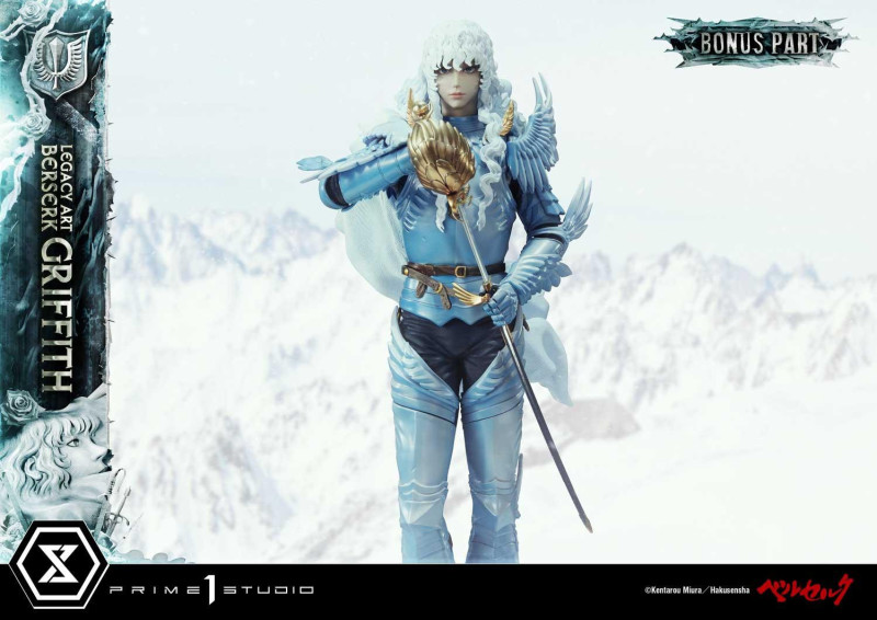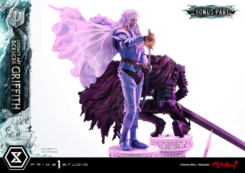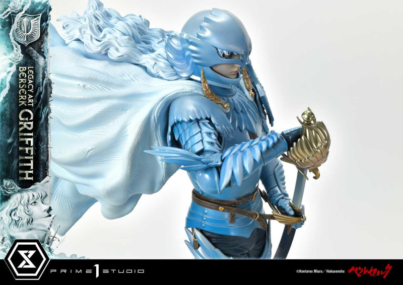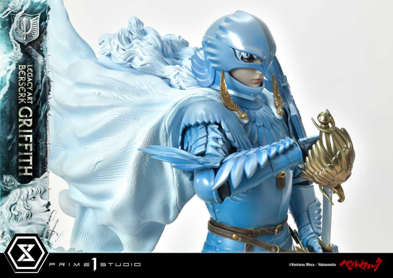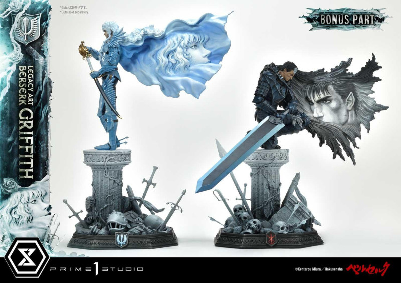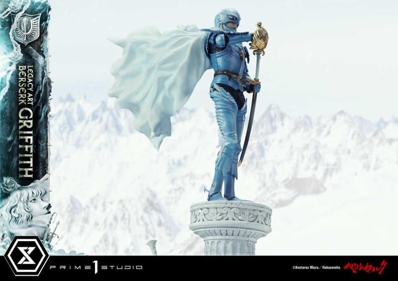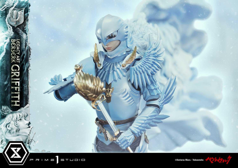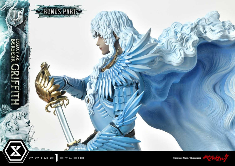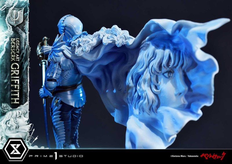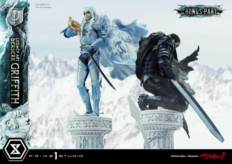 以 2009 年《Young Animal》第 19 期特別附錄的漫畫第 34 卷封面插畫為基礎,將凱茲、古力菲斯以黑劍士/白鷹對比呈現,曾經追求同一個夢想的兩個人如今背對著彼此,在平靜的氛圍中感受到命運糾纏。「古力菲斯 Griffith」1/6 比例雕像,還原插畫靜靜站立在風中、波浪狀的白色長髮隨風飄逸的俊美造型;白皙的皮膚、皎好的臉蛋,平靜的表情似乎透出淡淡的憂傷感,搭配一身大量羽毛狀的造型的潔白鎧甲、金色手柄的細長劍,營造出如畫般的神態,徹底展現古力非斯的魅力!