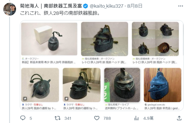 ▼推主調查以前也有出品過「鐵人28號」的南部鐵器風鈴