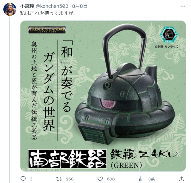 ▼網友看到後,說自己手邊只有這款「鐵瓶薩克ZAKU(GREEN)」,結果推主本人正是設計擔當XDD(果然職人的圈子很小)