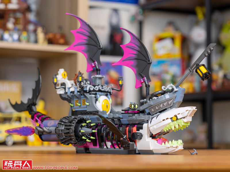 最後就是重頭戲,零件數來到 1389 片的「71469 惡夢鯊魚船」,不僅可以得到最大反派「惡夢之王」的超讚人偶,黑紫配色的惡夢鯊魚也是相當兇惡。
