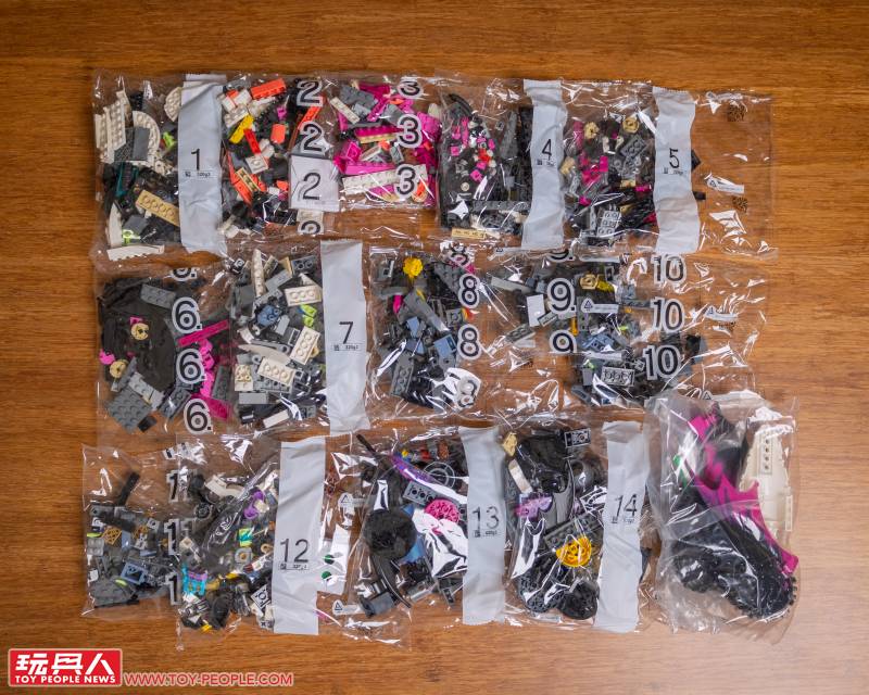 ▼ 內容物包含 15 包零件(共 14 包編號件+一包特殊零件)、說明書、貼紙。