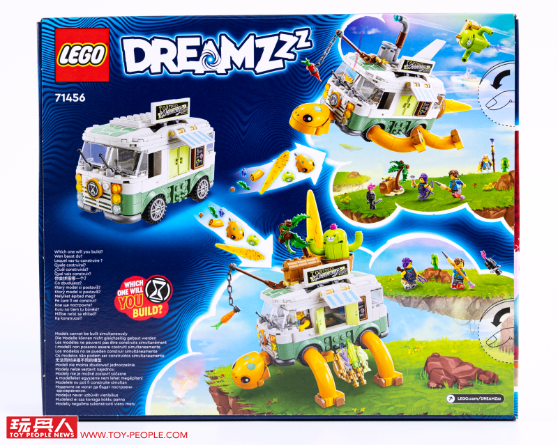 再來是第二款盒組、零件數 434 片的「71456 卡斯提歐太太的烏龜車」!卡斯提歐太太在《追夢人的試煉》中是一位開設墨西哥捲餅餐車的老太太,就算沒有看過動畫,光是這台車的外型就足夠吸引人了,可以再加上零件化身烏龜車簡直完美,本作也是小編個人最喜歡的 DREAMZzz 系列盒組。
