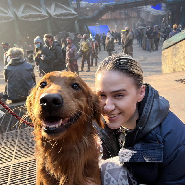 「太空狗科斯莫」狗狗演員史萊特,和配音演員瑪麗亞巴卡洛娃 (Maria Bakalova)合影。