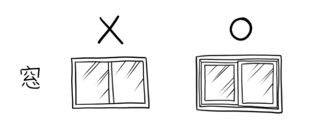 如果只是要畫圖示意,只要抓住物體的大概形狀就能傳達,例如在房子上面畫上方型加十字,就可以表達「窗戶」,這也算是一種約定俗成了。