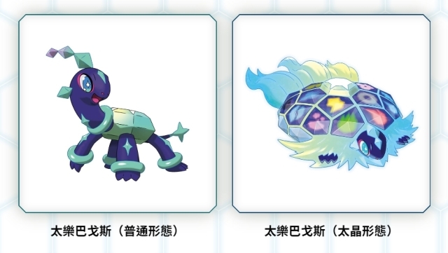 另外,本次世代所獨有的「太晶化」招式,也在未來發行的DLC『零之秘寶』中,將有全新型態。根據宣傳影片所公開的情報當中,似乎是新增了看起來像是「全屬性」的配招,而從這個新的太晶化圖樣來猜測,或許很有可能是一直受到玩家矚目的「太樂巴戈斯」專屬太晶能力也說不定。