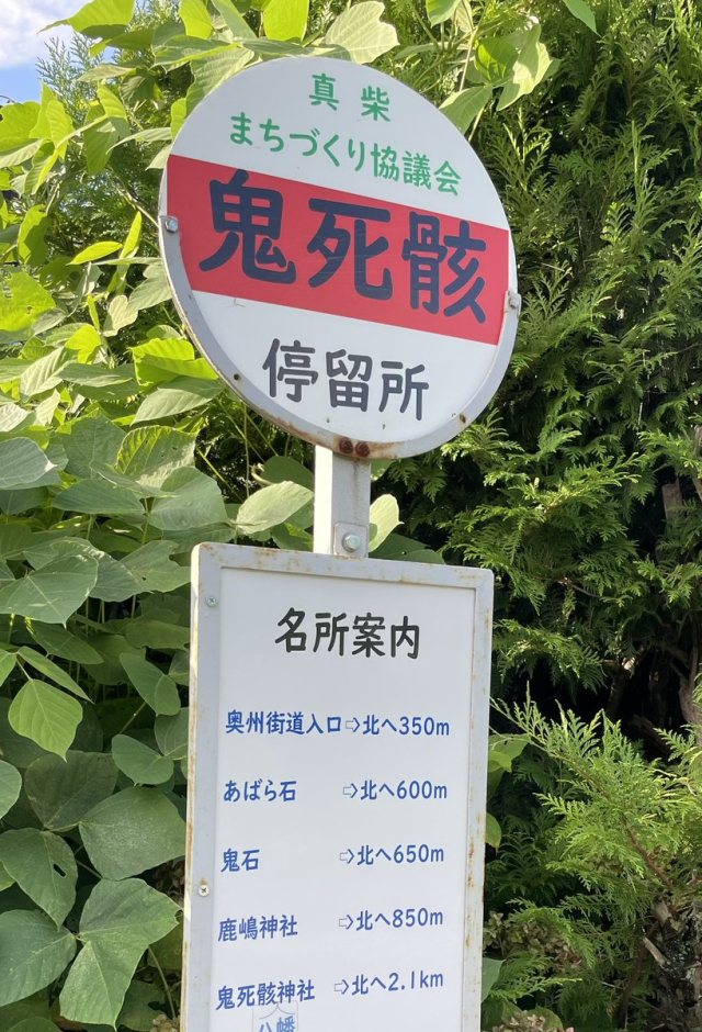 這個位於岩手縣一関市附近的「鬼死骸」,事實上是一個舊名,早在 1875 年(明治8年)10 月就廢止,不過當地仍把這個地名的公共設施作為保留,後續更因為漫畫《鬼滅之刃》火紅讓不少人朝聖該地。