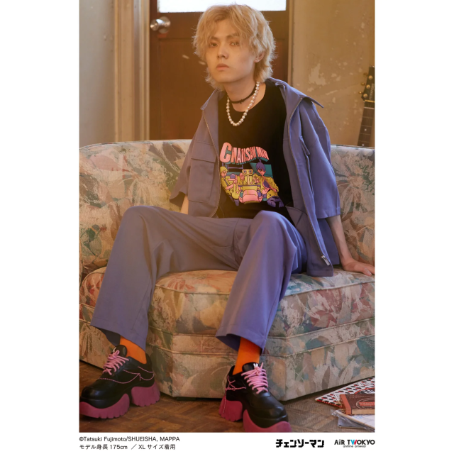 不同於一般販售品牌採用漫畫或動畫的圖片來操刀,AIR TWOKYO 擅長使用自家的繪畫風格來展現合作作品,也給《鏈鋸人》粉絲一個不一樣的選擇。