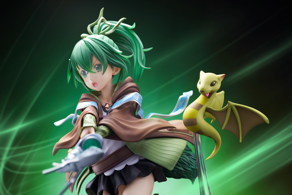 壽屋「遊戲王MFC 風靈使 薇茵」1/7 比例模型,以魔法卡牌「憑依覺醒(憑依覚醒)」的插圖設計為基礎,將風之美少女立體化!尺寸全高約 265 mm,隨風搖曳的綠髮馬尾辮加上略帶無辜卻認真的表情,散發迷人魅力~飄逸的裙擺露出青春可愛的大腿!獨特的手杖形狀與口袋中的小兔兔等細節也充滿亮點~