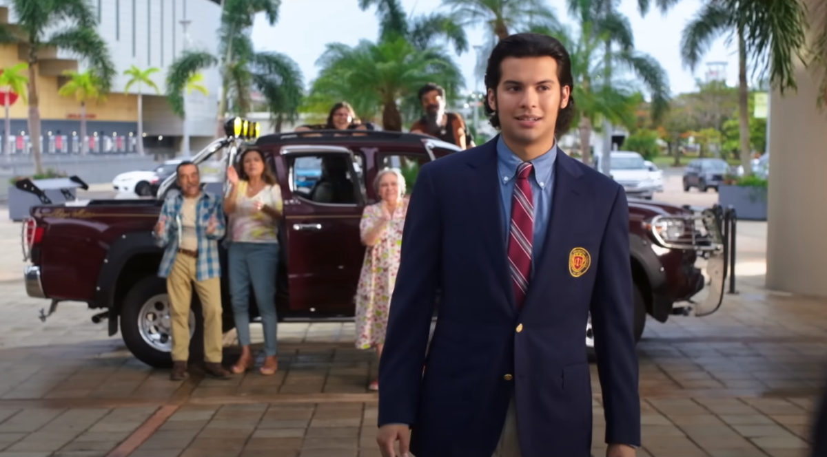海梅從大學畢業典禮風光回到家鄉,從他的制服可以看到,他就讀的其實是高譚市法律大學。