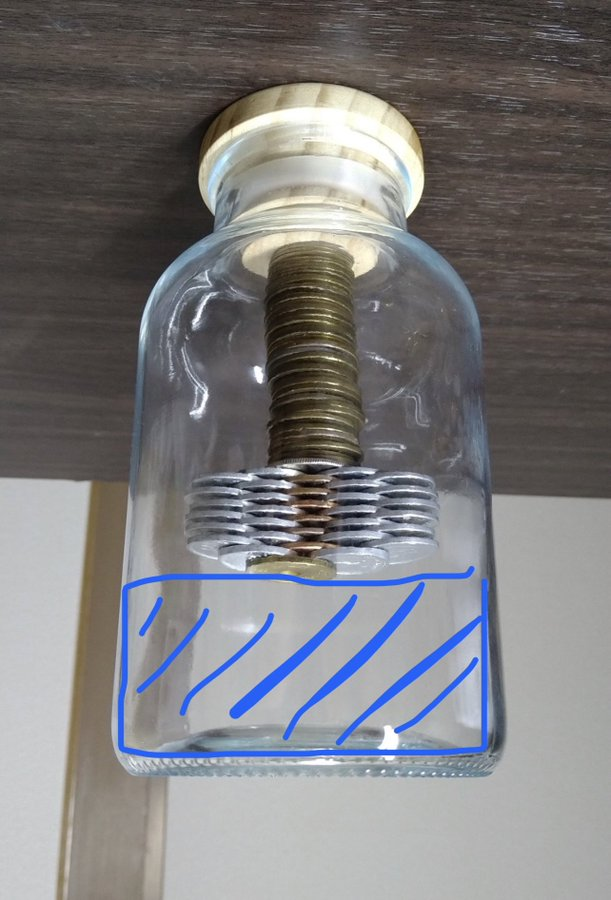 網友:「像這樣放一點水讓它結凍,堆硬幣然後用蓋子和冰抵住,倒過來,等冰融化後再稍微打開蓋子讓水流出來。」