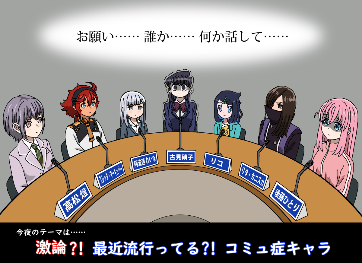 日前Twitter(現稱為X)網友しでぼー(@fukuhara15)就分享了一篇包含《孤獨搖滾》(ぼっち・ざ・ろっく!)、《機動戰士鋼彈 水星的魔女》(機動戦士ガンダム 水星の魔女)、《古見同學是溝通魯蛇。》(古見さんは、コミュ症です。)、《寶可夢 地平線》(ポケットモンスター)...等角色坐在一起,感覺氣氛...超級僵、超級壓抑的啊!