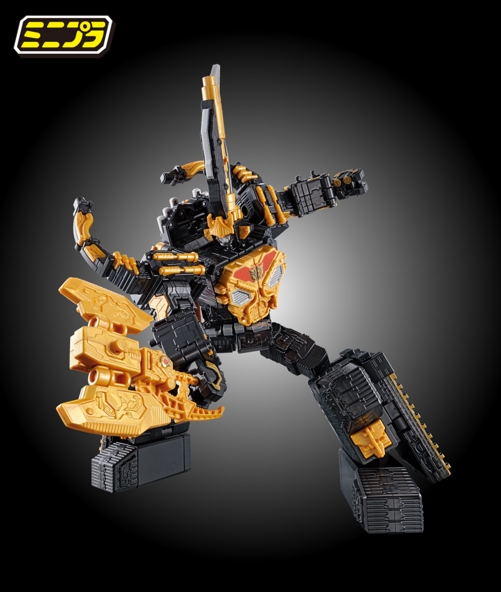 「MINIPLA 守護神合體04 王者南洋大兜蟲&守護者武裝赫克力士斧」將兩架機體分成 5 盒零件,湊齊後便能組裝完成王者南洋大兜蟲與守護者武裝赫克力士斧,具備較少偷膠結構並使用多種成形色再現黑金配色的魄力身軀。王者南洋大兜蟲能夠變形城堡、守護神(蟲)、機器人三段形態機構,全身可動關節搭配赫克力士斧再現施展必殺技姿態。