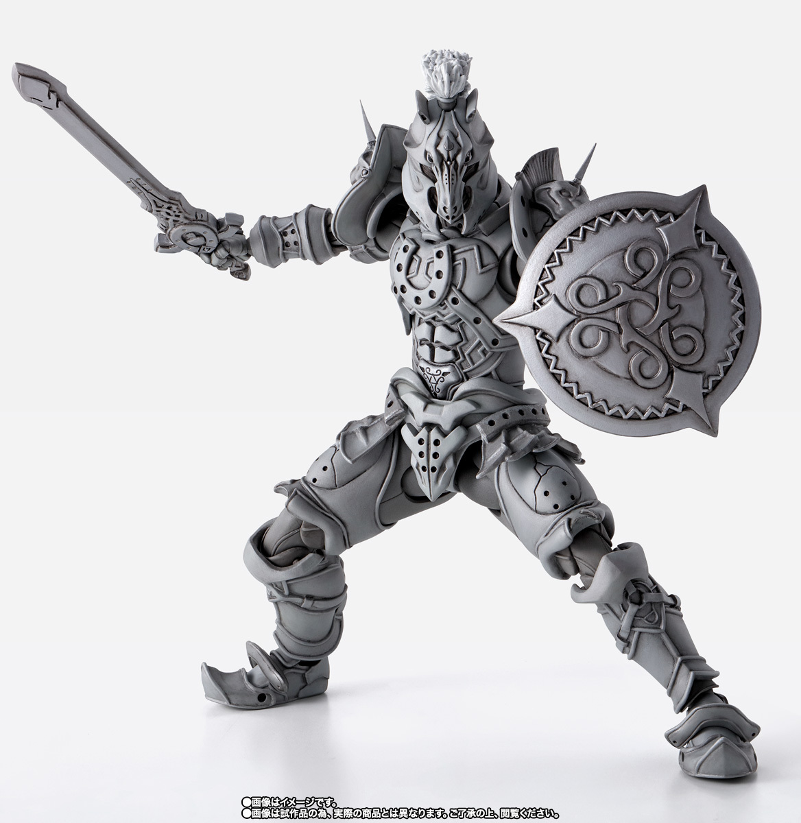 「.H.Figuarts(真骨彫製法) 馬操冥使徒」基於劇中體態比例製作,相較舊版 S.H.Figuarts 擁有更加寫實的粗壯軀幹與四肢造型,從雙層構造頭部、雙肩寫實的馬頭裝甲、全身豐富的幾何設計雕紋皆有細膩刻畫,並藉由凸顯立體感的灰色塗裝展現如藝術品般的姿態。關節的可動範圍靈活,能夠搭配魔劍、盾牌再現劇中多種戰鬥姿勢,其中持盾手掌也採用更靈活的新規可動機構。