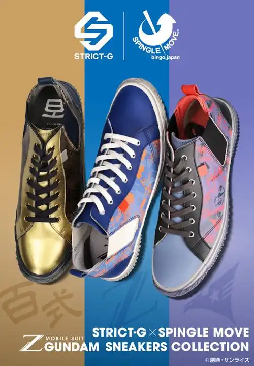 將《機動戰士鋼彈》系列的世界觀融合潮流服飾的官方品牌「STRICT-G 」,繼先前與日本國產運動鞋品牌「SPINGLE MOVE」 合作推出聯名皮革運動鞋。近日再次攜手合作,推出以《機動戰士Z鋼彈》三台機體為特色的皮革運動鞋款,一次推出三款主題配色。售價為 30,800 日圓,目前可於日本萬代 PB 網站訂購。