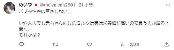 ▼「我不會否定嬰兒PLAY這種性癖。啊不過,也是有不少大人會因為嬰兒奶粉比較有營養所以買來呵......是這樣嗎?」