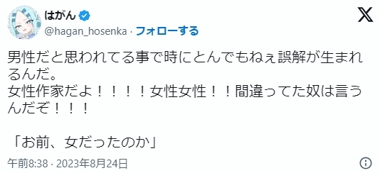 ▼「因為常常被認為是男性作者,所以偶爾都會發生不得了的誤解。我可是女性作家啊!女性!之前搞錯的人也這樣說過了!!『蛤?原來你是女的喔?』」