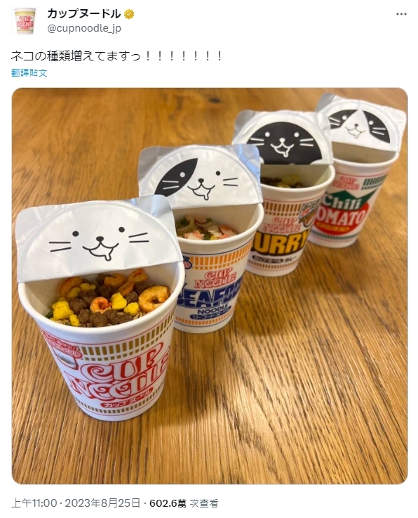 而日清官方推特則在25日貼了一篇相當可愛的推文:「貓咪的種類增加囉!」