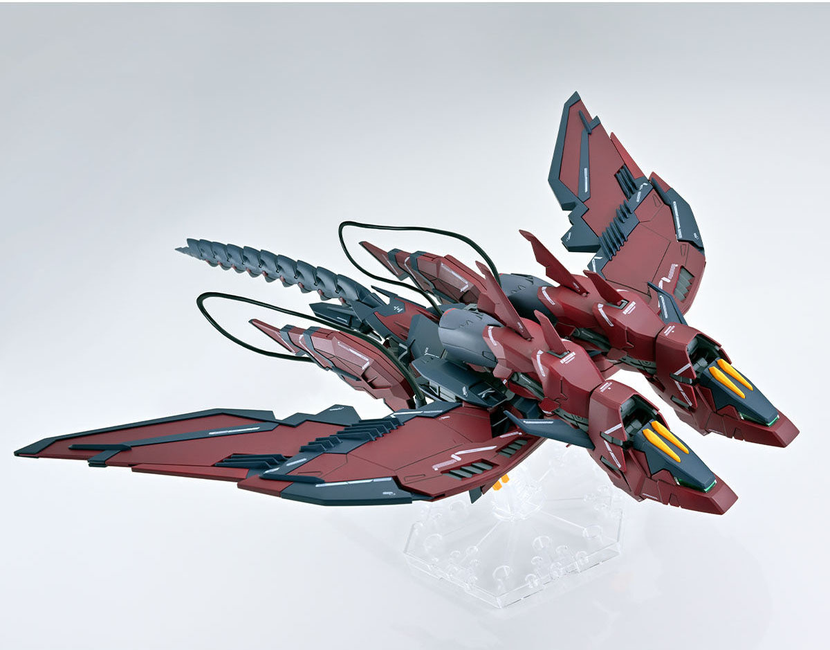 此次推出的「疾風怒濤裝備」則出自漫畫版《新機動戰記鋼彈W 敗者們的榮耀》,是延續 OVA 版《無盡的華爾茲》設定的新裝備。MG 套件基於過去推出的次代鋼彈EW修改而來,本體同樣由機械設計師 KATOKI HAJIME 監修,還原彷彿惡魔般銳利的紅黑色裝甲、飛行型態「雙龍」的變形機構,並以完全新規零件製作出疾風怒濤裝備。