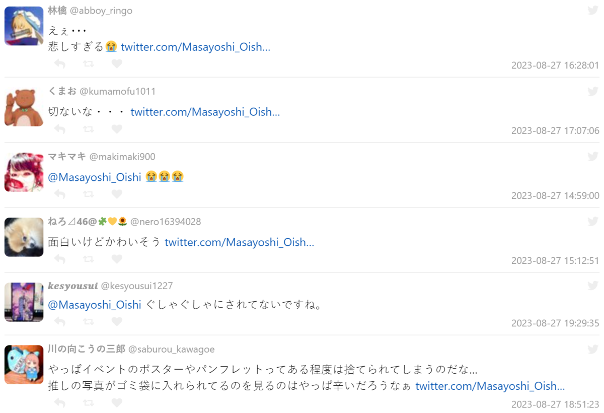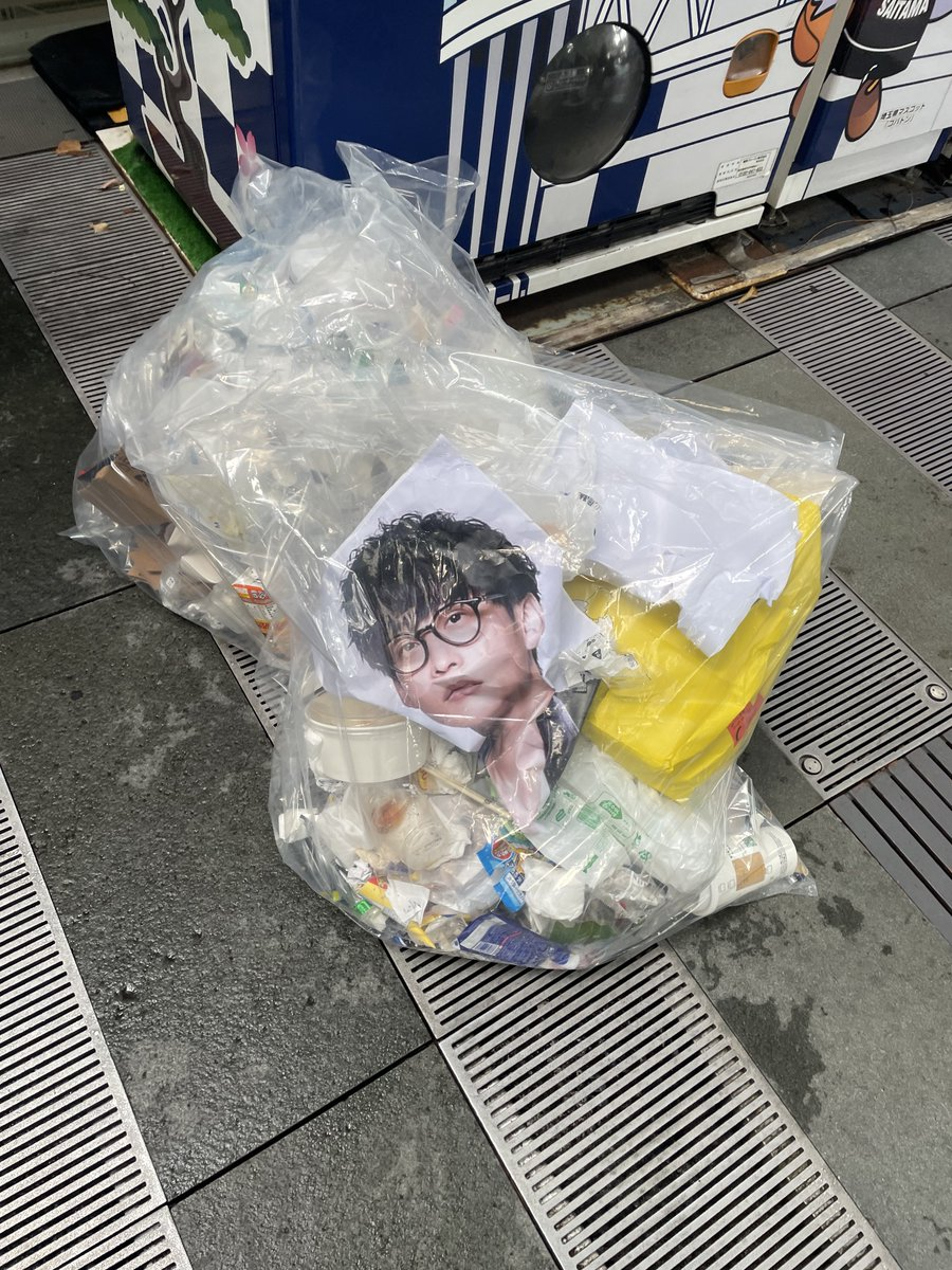 不過身為創作歌手的オーイシマサヨシ(大石昌良) ,卻在演唱會結束後分享了一則推文,看到粉絲自製自己的照片看板,卻被這樣丟到垃圾袋裡面,看到這場警感覺有點微妙,這也吸引不少網友關注。