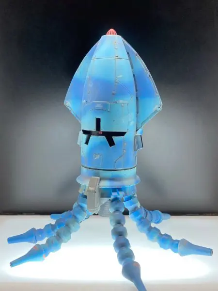 參考吉翁軍各種水陸兩用的 MS 特色,並結合自己的創意打造而成,他也提到有想到電影《駭客任務》中的電腦兵器烏賊的靈感加入其中。