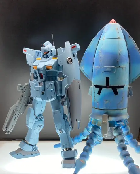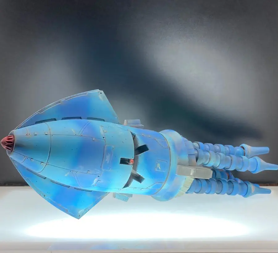 不過這次要介紹的,則是用塑料零件自行組成特別樣貌的案例,這位推主拳王 ( @kenou4415 ) 嘗試用「吉翁軍」的概念,用各種零件自行組成的水戰用 MS,這神似烏賊的外型且帶有吉翁軍的氣息作品,獲得不少愛好模型的日本網友好評。
