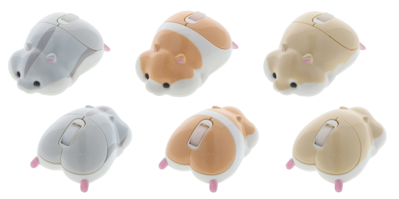 「屁屁滑鼠」是以我們常見的寵物倉鼠為造型的滑鼠,有三線鼠、黃金鼠與老公公鼠三款,該系列滑鼠皆為無線,且10公尺內皆能感應得到,另外還有閒置10分鐘左右便會進入睡眠模式的省電功能,讓你能夠安心且持久使用。