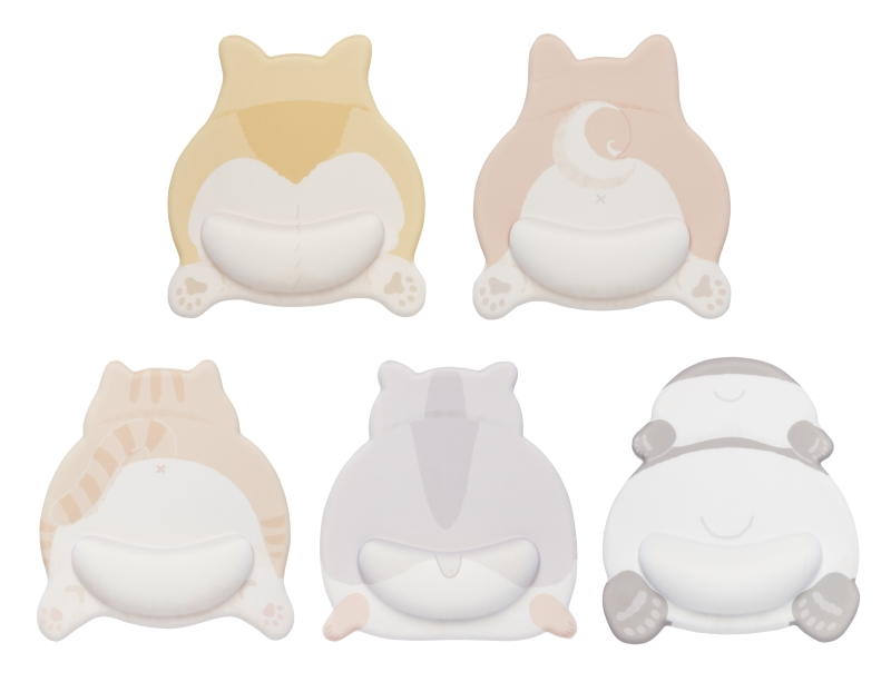 而「屁屁滑鼠墊」則是以貓、狗、貓熊與倉鼠四種動物為造型的可愛滑鼠墊,並且有五種類,分別為柯基、柴犬、倉鼠、貓與貓熊,每個滑鼠墊的圖案皆是動物們屁屁對著我們的樣子,且在手腕處有柔軟墊護著,讓你在使用滑鼠時還能感受「屁屁」帶給你的舒適感。