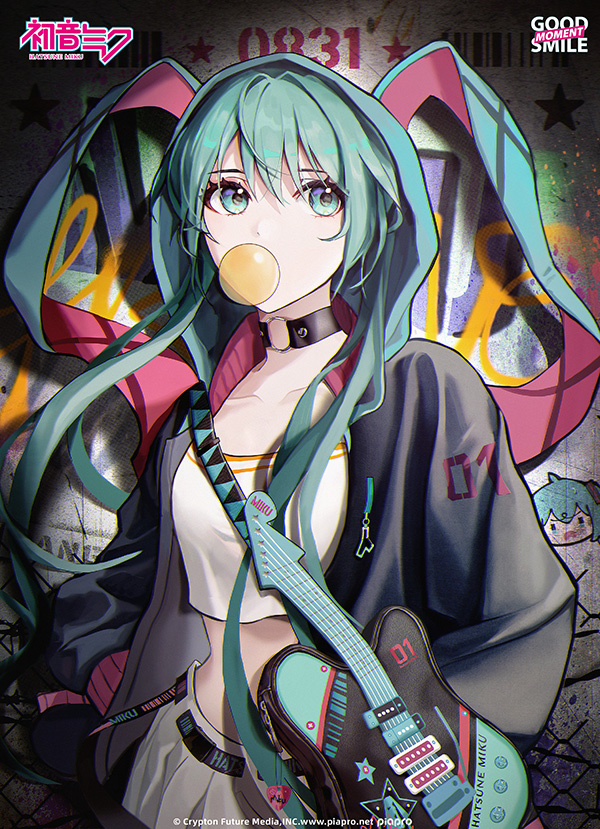 三款包含 : 吉他造型側背包、連帽外套與帆布皮帶,皆以本次合作的初音繪圖為形象製作而成,理所當然的充滿的初音色系的設計。