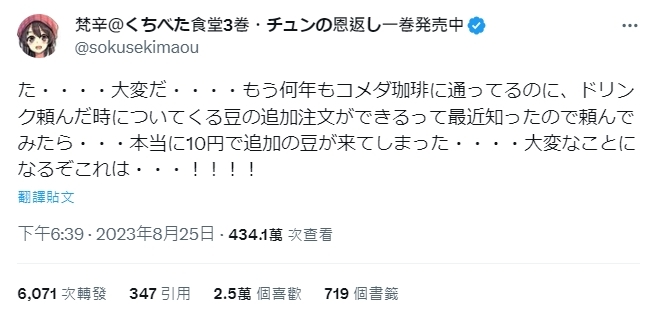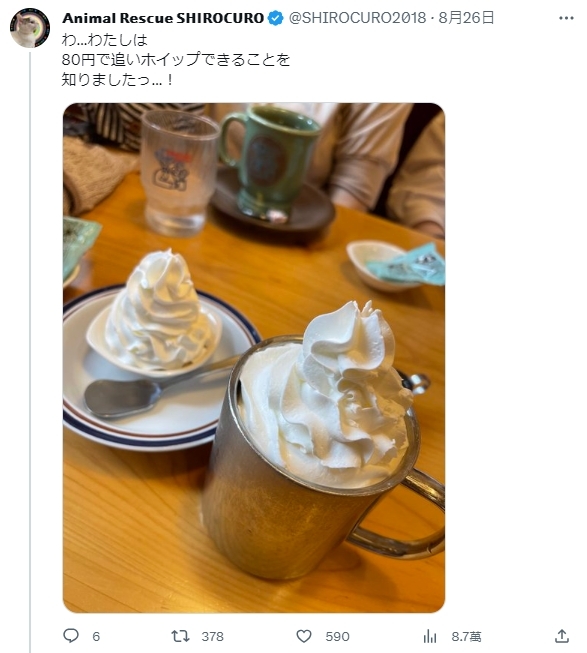 而也有網友補充,其實日本客美多也可以用80日圓的划算價格加點鮮奶油,能夠享受相當罪惡的飲品。
