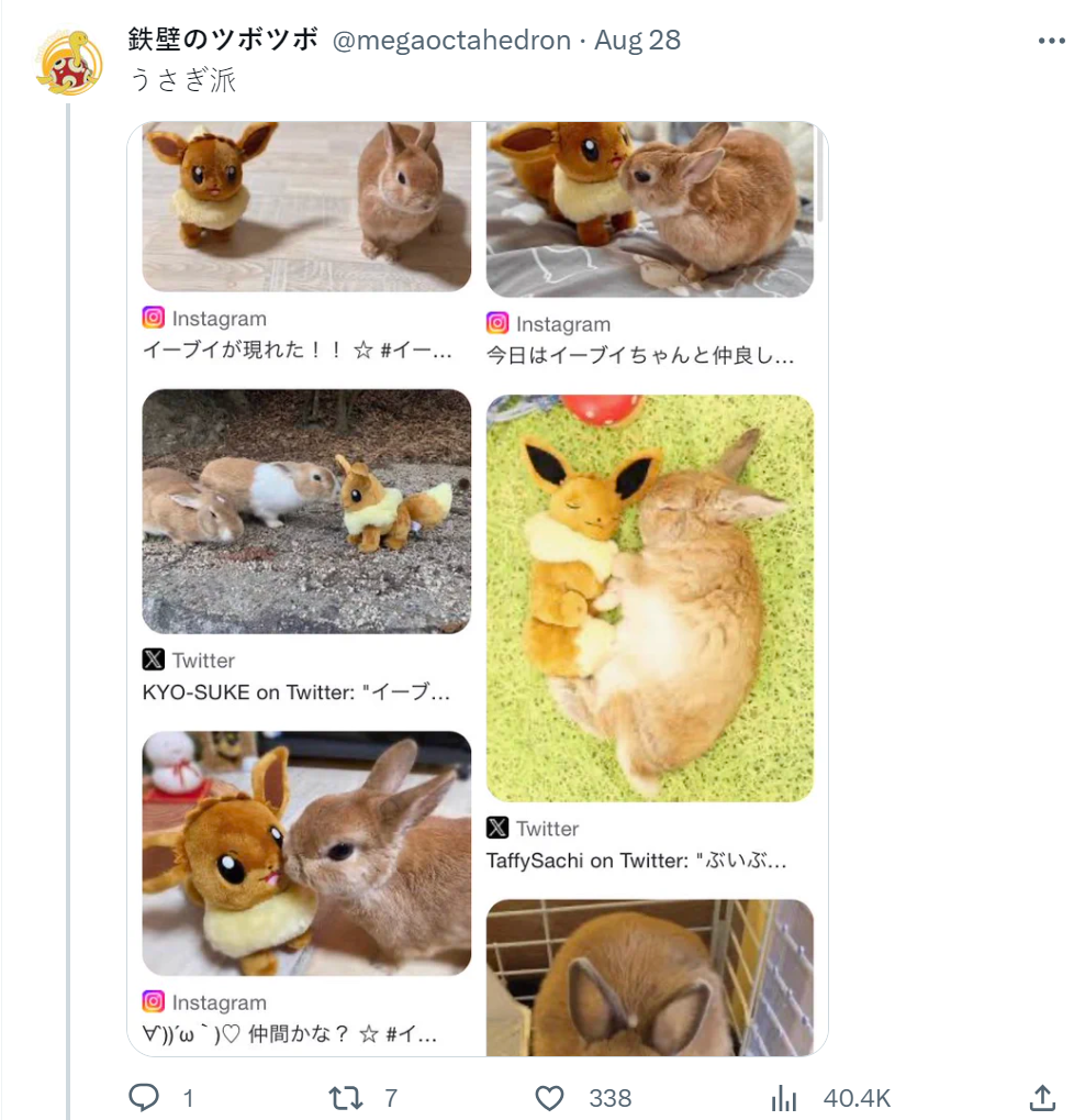 除了常見的貓狗狐狸派之外,兔子派在日本也大有人在,把兔子跟伊布送作堆的可不少 XD。
